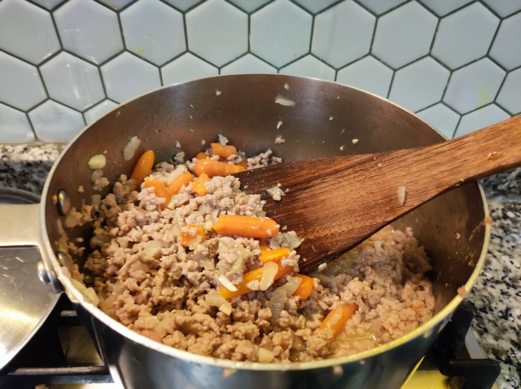 - Agrega la carne picada y rehoga hasta que esté cocida y tome color.